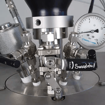 Swageloki liitmikud koos kaitsemembraani, manomeetri ja kahe ventiiliga