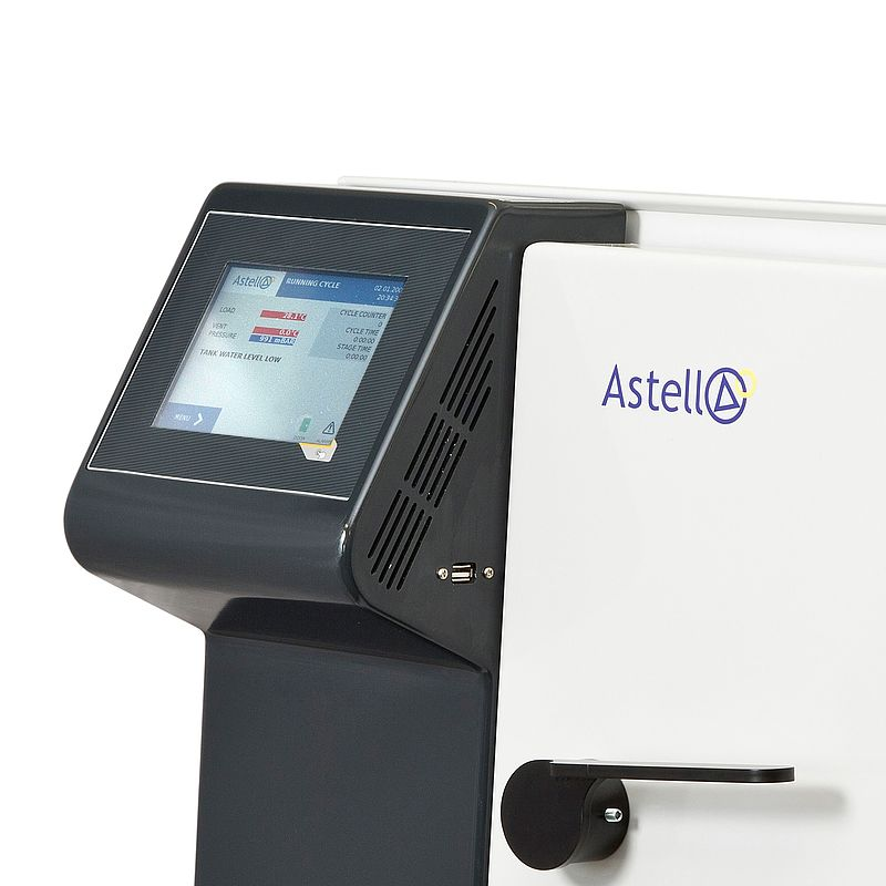 The range is available as classic (manual water-fill) or autofill. The ‘autofill’ version has an integral reservoir and an in-built water re-circulation system. Once the reservoir is filled, this provides water for up to 15 cycles. All Astell autoclaves incorporate the latest innovations in control system technology including colour touchscreen controllers as standard feature.
