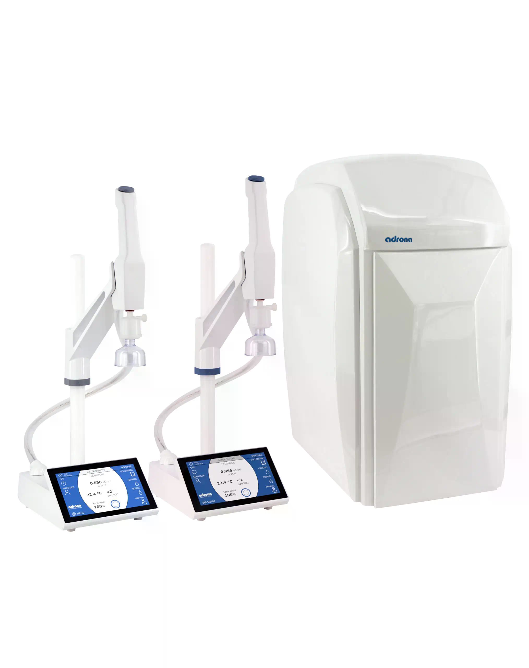 Adrona's dual systems - Gradus, Gradus EDI, Q-Front, and Q-Front EDI - provide advanced solutions for laboratories needing high-quality water. The Gradus series emphasizes advanced technology and connectivity, while the EDI versions improve efficiency and lower costs through innovative electrodeionisation. The Q-Front models simplify purification with user-friendly interfaces and low maintenance. Compact systems offer an efficient and space-saving solution for producing ultrapure water directly from tap water. Collectively, these systems ensure reliable water quality and cost reduction, enhancing research and analytical capabilities.